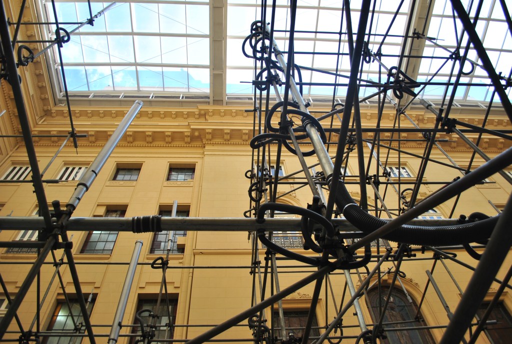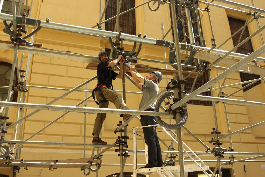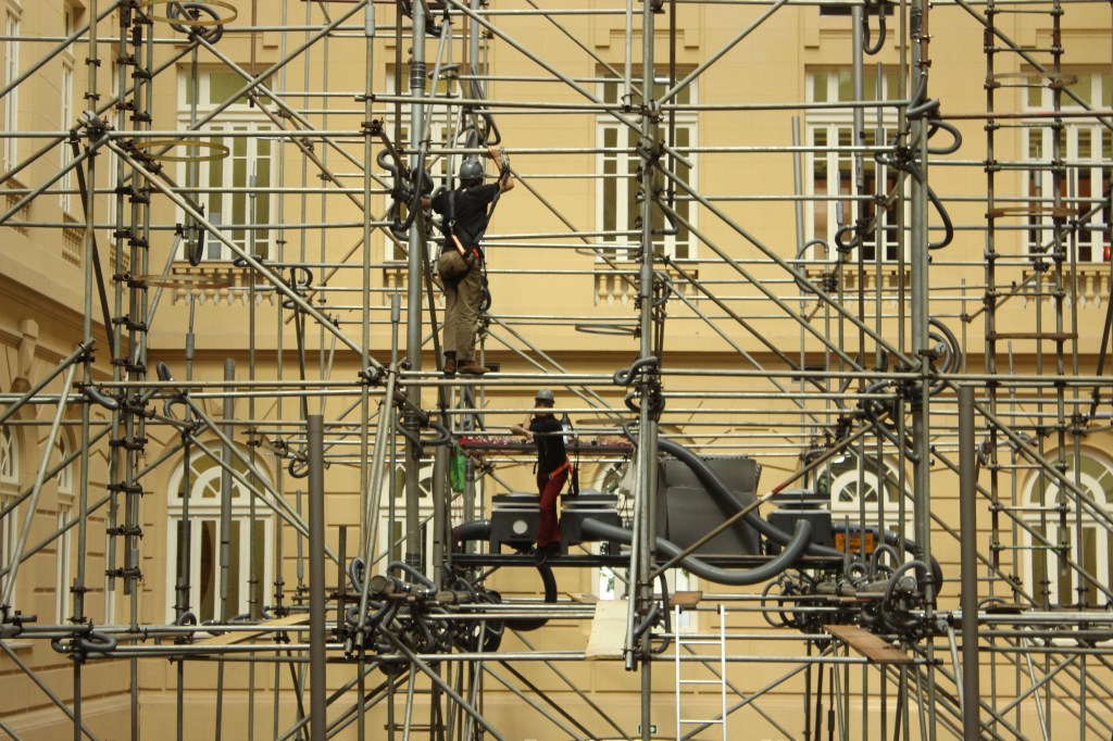 The art work O DIREITO A PREGUIÇA (THE RIGHT TO LAZINESS in loose translation) by Nuno Ramos is a 12 x 16 x 14 meters high “scaffolding organ”, composed of 106 pipe organ flutes. Leandro participated in the elaboration process and assumed the technical coordination of the art installation, which is triggered in an automated way. The structure plays the arrangement written by Leandro César of “O samba de uma nota nota”, a deconstruction of Tom Jobim and Newton Mendonça music. The sound art installation was exhibited at the cultural center CCBB (Bank of Brazil Cultural Centre) in Belo Horizonte.