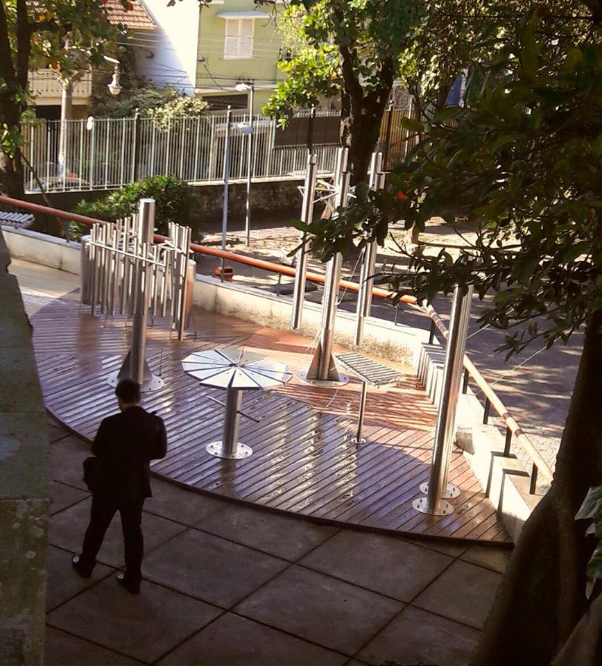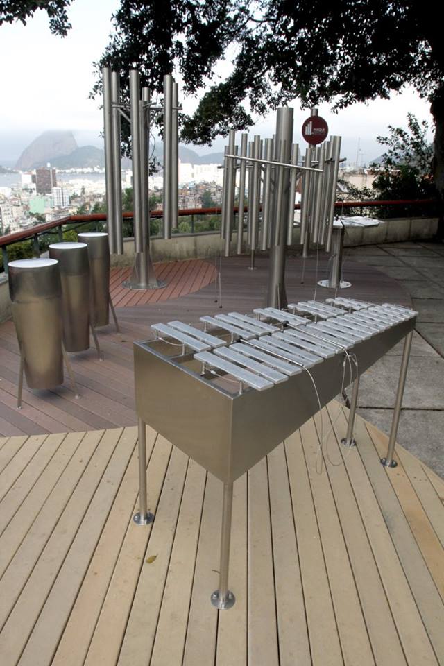 The MUSICAL PARK is a public musical installation, a sound park, interactive and accessible to all. At the invitation of Gisa Pitan and Adriano Basegio, Leandro conceived and built 6 instruments to compose the MUSICAL PARK, installed at the Municipal Cultural Center “Parque das Ruínas”, Rio de Janeiro. The outdoor creation is made with stainless steel to resist the weather. The design of the instruments is inspired by nature with flowers and trees shapes. The layout of the instruments and their forms were designed for the public space and to be played collectively and to sound together.